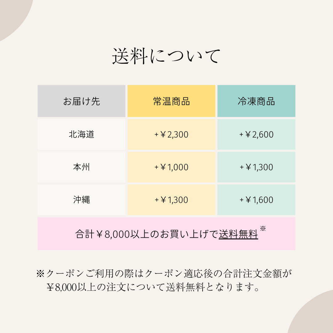 注文合計金額8,000円以上(クーポン適用を含む)で配送料が無料となります。